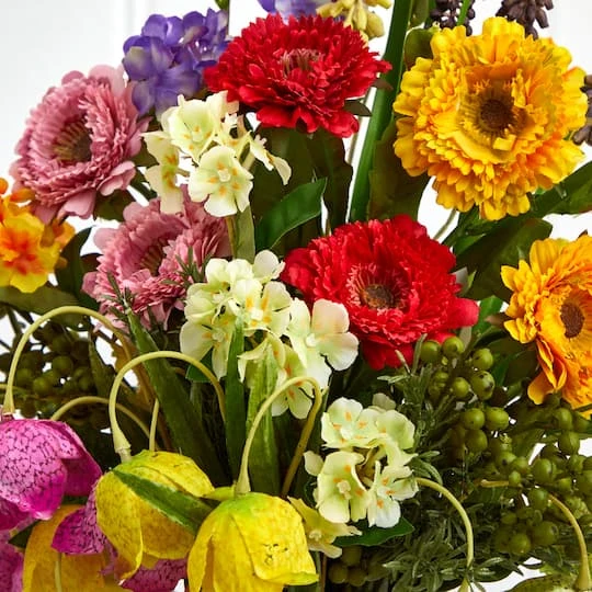 Spring has truly sprung! A bold floral arrangement is certain to draw any flower lover’s attention, this striking piece is the perfect “pick me up” gift for any friend, family member or other loved one. This beautiful display showcases the rainbow of colors found in this selection, making any room in your house come alive with natural beauty.