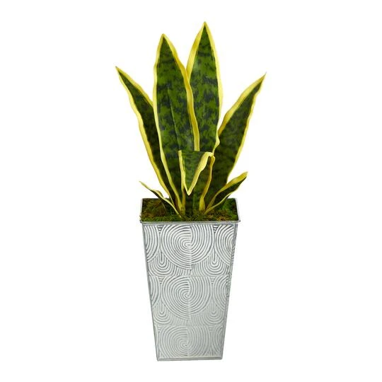 Shh… no one will know your secret with this artificial snake plant. Bring vertical foliage to your space with the snake plant’s sword-like leaves, maintenance-free. Standing 18″ tall from a decorative planter, add this faux snake plant to compact spaces like awkward corners, home offices, bathrooms and bedrooms.