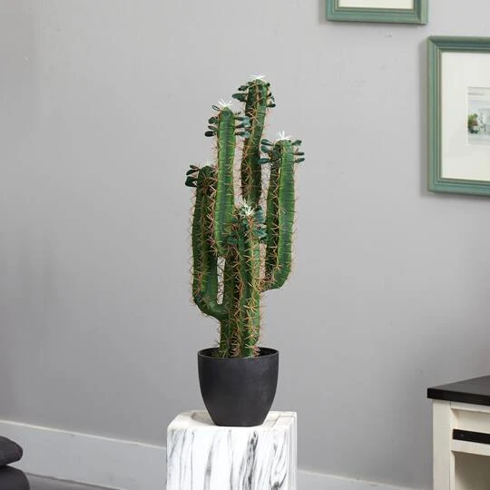 - Green cactus in black pot