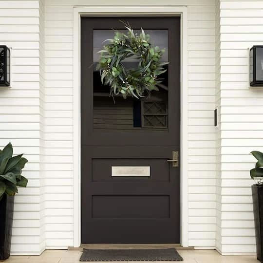 A combination of several lush green leaves, dotted with dainty white berries, makes up this artificial eucalyptus wreath. With its luxurious greenery, this versatile piece will look perfect in any settings, no matter what time of year it is. You can hang it in your living room or on a bedroom door and complement it with your personalized door sign.