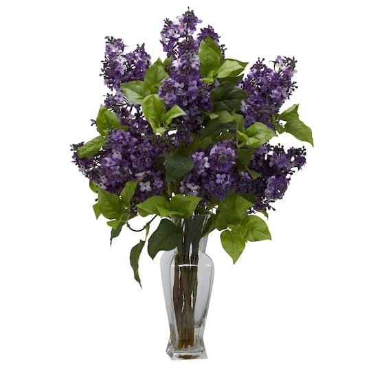 Lilacs are amongst the most colorful of flowers, and we’ve captured that perfectly with this “nearly natural” re-creation of lilacs in full bloom. Yes, you won’t be able to smell them, but they look so perfectly real, with delicate, colorful petals adorning stout branches with green leaves, that you won’t mind one bit. This colorful collection is gathered in a glass vase with liquid illusion, making it the perfect adornment for a table, counter, or desk.