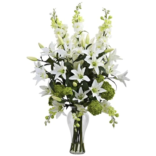 Lily, Delphinium & Hydrangea Silk Arrangement