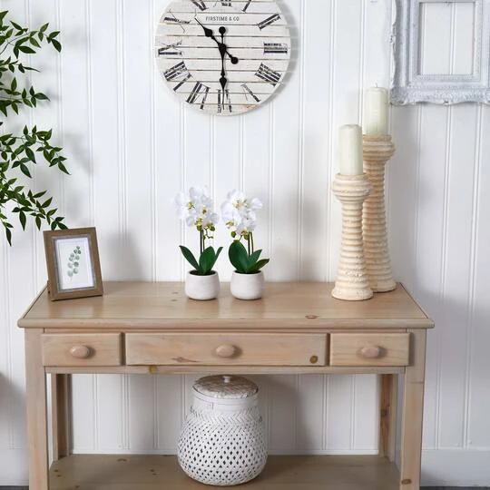 The phalaenopsis orchid artificial arrangement features pure white petals hovering above dark green leaves. Sporting an elegant look, this ornament will bring color and life to your home or office space. With a set of two included, you can settle these pieces on your built-in wall shelf alongside your picture frames, metal lantern, or tea lights for a dramatic statement.
