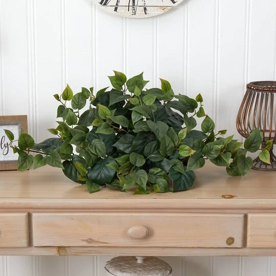 Highlight bare spaces with this artificial plant boasting a rich overgrowth of philodendron foliage in a palette of year-round evergreens. Set on decorative foam for easy placement, this silk plant reaches 31″ long.