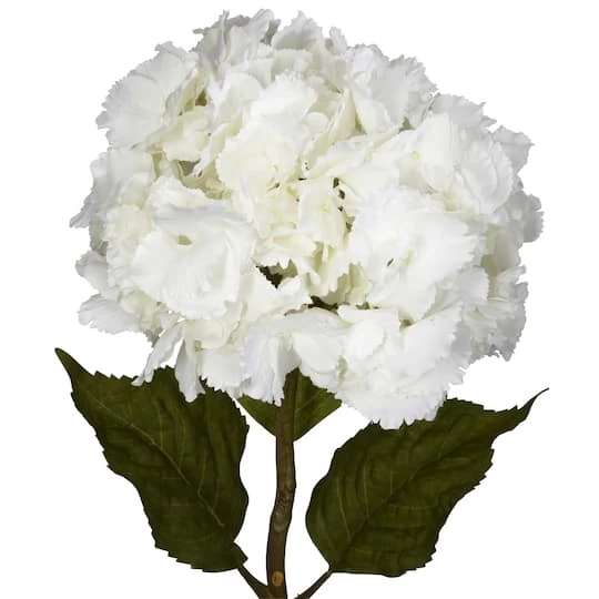Full blooms come together in a plush head of flowers to form this gorgeous hydrangea artificial flower. These stems have been carefully crafted for a lifelike appearance and feature realistic leaves. These stems can be clustered together in a vase with your favorite faux ferns for a complete floral arrangement. Arrives in a set of three hydrangea flowers.
