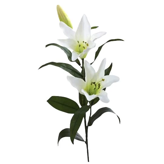 The white blooms with light green centers of these artificial lily flowers are incredibly realistic. The dark green, smooth-edged leaves add to the brilliance of the white lilies. With multiple blooms and buds on each stem, this set of 12 stems is sure to have you thinking spring. This elegant bouquet would look beautiful when arranged in a tall black vase and placed next to your kitchen sink to bring a touch of nature indoors.