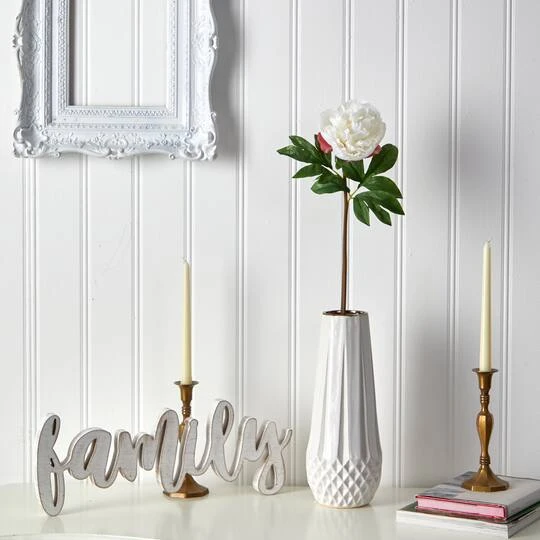 Fancy a fresh from the garden feel? Display beauty all year long with this hand-crafted feminine peony artificial flower bouquet. The white peonies in bloom, create a textured medley of foliage that is contrasted by red flower petals. Stemming 20”, seek the attention of all who lay eyes on her and have fun in your next DIY session. Comes in a set of 3 flowers. Your stems will look beautiful for years to come; simply wipe clean with a soft dry cloth when needed.